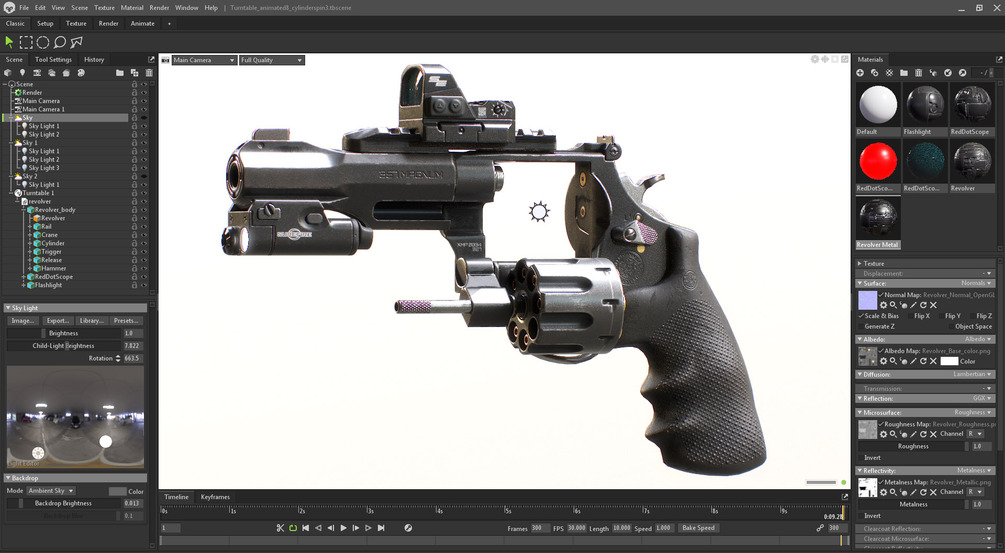 Hey everyone! Today I am happy to bring you an all new, state of the art weapon tutorial for the Blender era as well as Marmoset Toolbag 4 and Substance Painter for baking, texturing and portfolio ready renders. Create a customizable revolver together with two mountable attachment pieces for it: a flashlight as well as reflex scope as you would find it almost any modern video game these days. We built the revolver fully detachable: you can even take the rail off.
